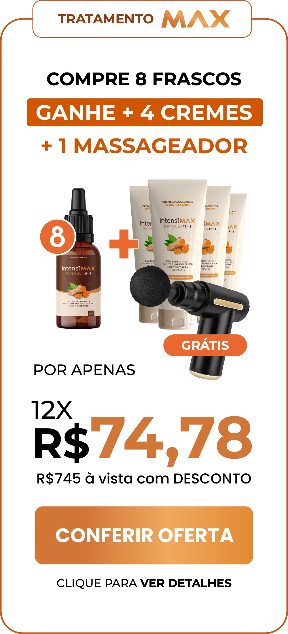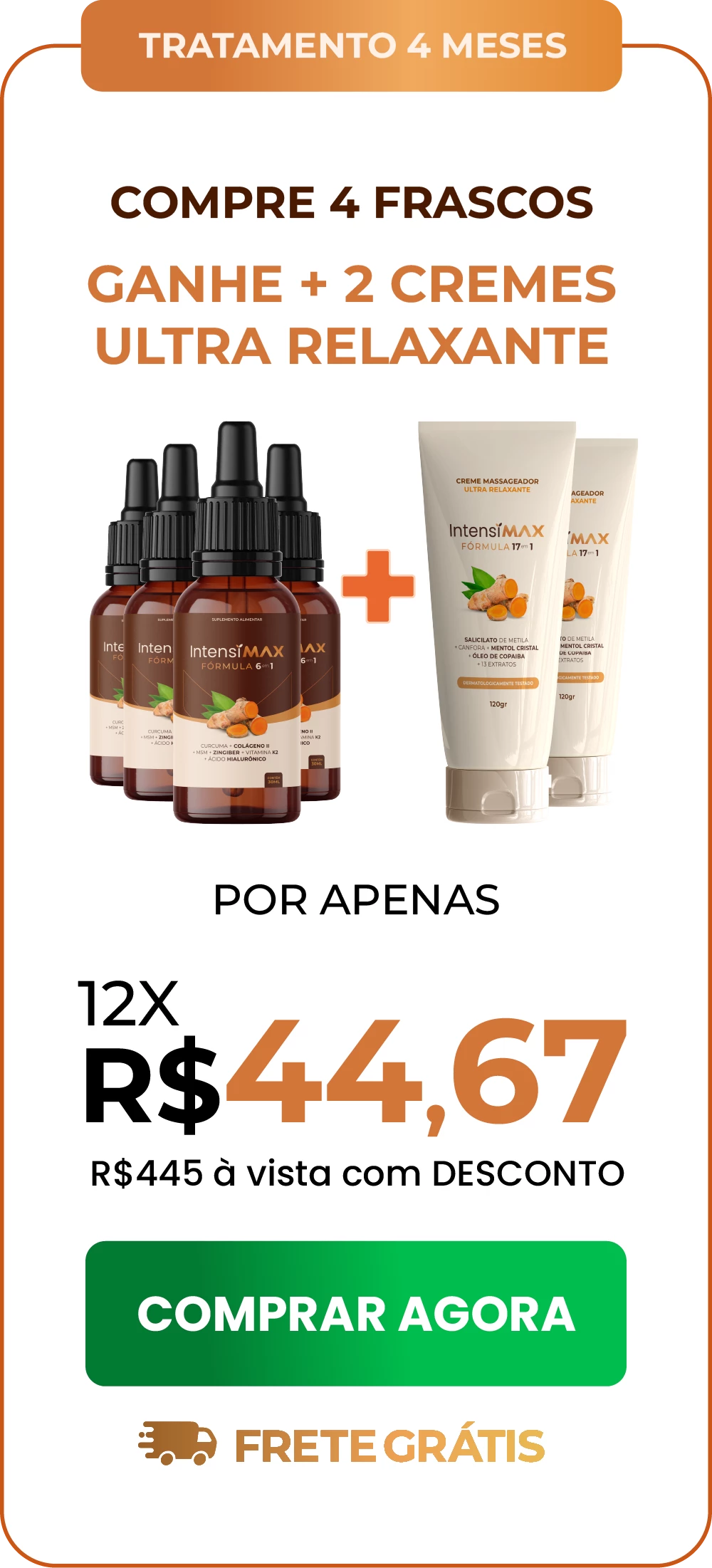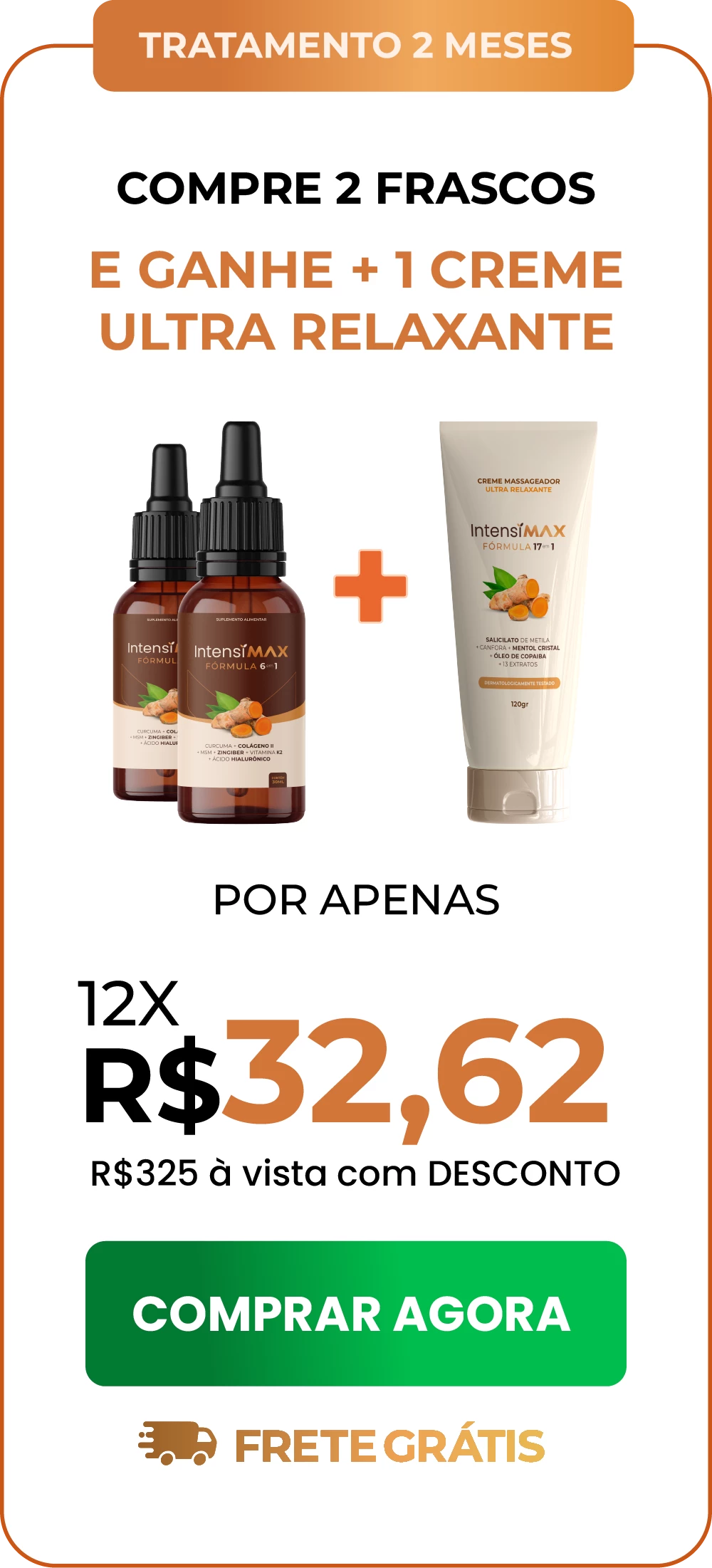 “A incorporação de ingredientes como cúrcuma e colágeno tipo II na dieta pode ter benefícios significativos para a saúde das articulações. O IntensiMAX oferece uma maneira conveniente de obter esses nutrientes essenciais, proporcionando alívio das dores articulares e promovendo a regeneração da cartilagem de forma natural.“